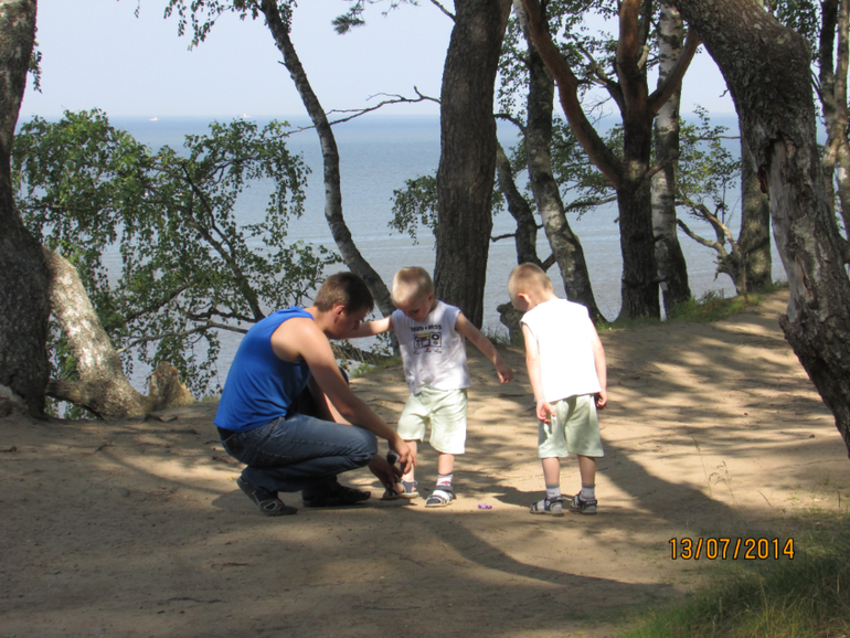 ОООО вот этот кадр вообще классный. пока все смотрели на водичку даже не заметили что стоят на муравейники, дети как запищат, "СПАСИТЕ ПОМОГИТЕ, МУРАВЬИШКИ" а они такие большие их спихиваешь а они своими лапками уцепились за носочки и не скинуть. Папсик наш спасал деточек.