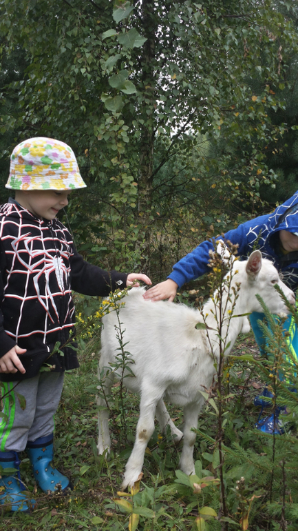 А вот это вообще было для малых счастьем))))В лесу увидели козленка и козу