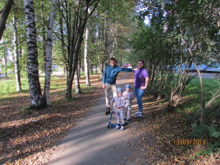 А вот наше дружное семейство "спортивное". пока детки были с бабушкой и дедушкой, мы с мужем рассекали по дворам :)))) правда теперь дружно болеем, так как холодновато было, а мы ж носимся. Зато сколько положительных моментов.