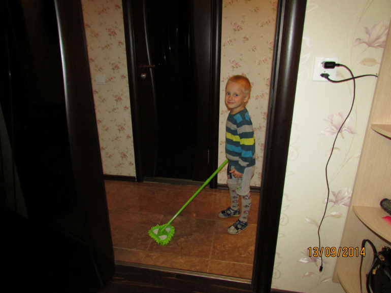 Масянечка нашел швабру (для окон, но он ее использовался для пола) и мыл полы до "блеска"