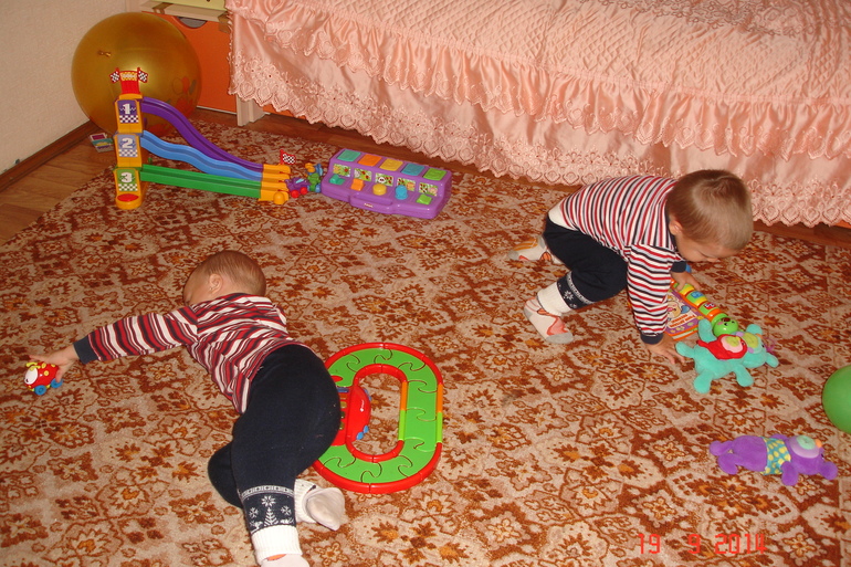 Двойняшки от 1 года до 3-хну,вот и дошли ручки до мини-отчёта)),нам уже два и месяц,в сад было два захода по неделе,после каждого-лечение((,сейчас долечиваем кашель и,я надеюсь,на следующей неделе возобновим походы в д/с)).там,к слову,практически не писяются,не плачут,короче,воспиталки довольны,и я тоже)),попали мы в ту же группу,которую посещала дочь,так что,мы там свои)).В последний месяц появилось много новых слов:бика-машина(это из сада принесли),дай,отдай,"си"-сыр,"Ана"-Аня,даже словосочетания:"на сюм"(на сумку),"дай пипи"(дай пить),Ванюшка вообще практически всё повторяет,старшая с ним иногда прикалывается как с котом-повторюшкой))