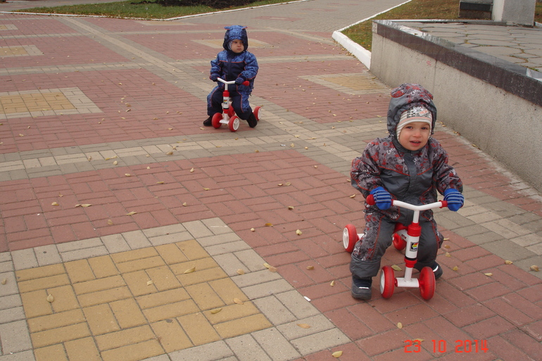 а это мы сегодня гуляли,было -1,обновили костюмчики и прогуляли беговелы))