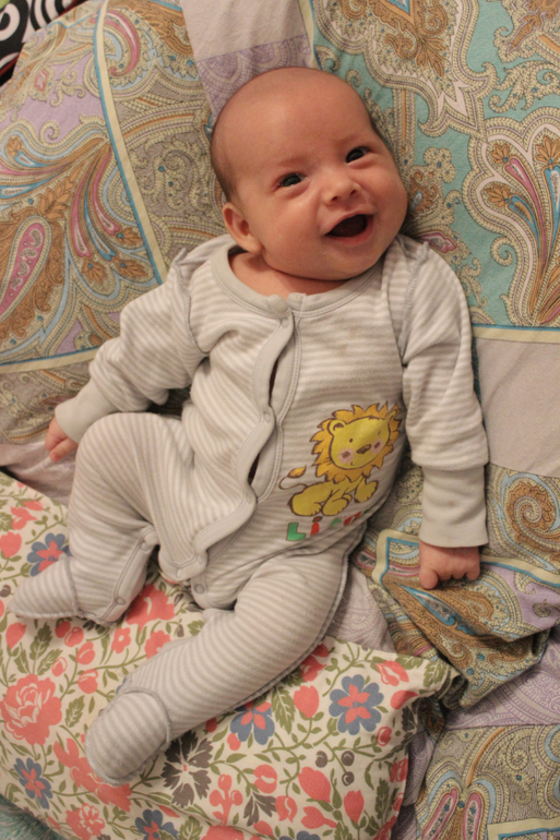 Лёвка у нас пухляш. Был 2800, сейчас 5300. По щекам сразу видно. Он у нас серьезный и важный))) Мужик настоящий. Плачет если уж совсем обидели. Причем начинает так плакать жалобно, мол как вы могли меня обидеть, я же такой терпила. А еще он улыбаха. Следит за тем как я хожу по комнате, за моим голосом. Улыбается, потихоньку начинает гулить. Это так круто, когда лежит и ррраз и заулыбается тебе. Ему все интересно, игрушки, люди, квартира. Познает окружающий мир в общем. Сладкий сладкий мальчик))