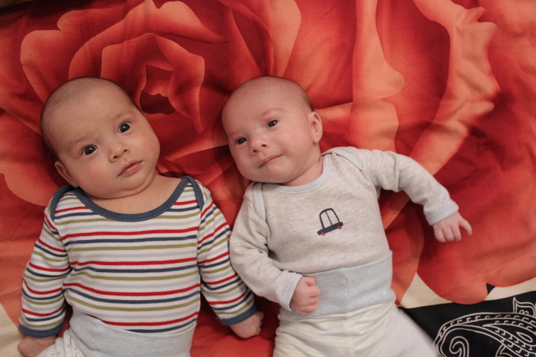 Вообще ребята на самом деле у нас молодцы. Более менее нормальный режим дня держут. Едим мы днем раз в три часа, чаще не балую. Вечером в 9-10 искупались и баиньки строго в кроватке, никаких ручек, кроватки у нас без качалки. Ромка просыпается за ночь пару раз, а Лёвка в 6 утра в основном. Ну между едой днем можем и поскандалить и поспать и на радость маме лежать с милейшими моськами.