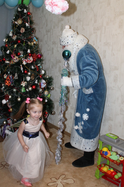 Здесь Дед Мороз измеряет рост рукавичкой каждого !Милана поднапряглась)))
