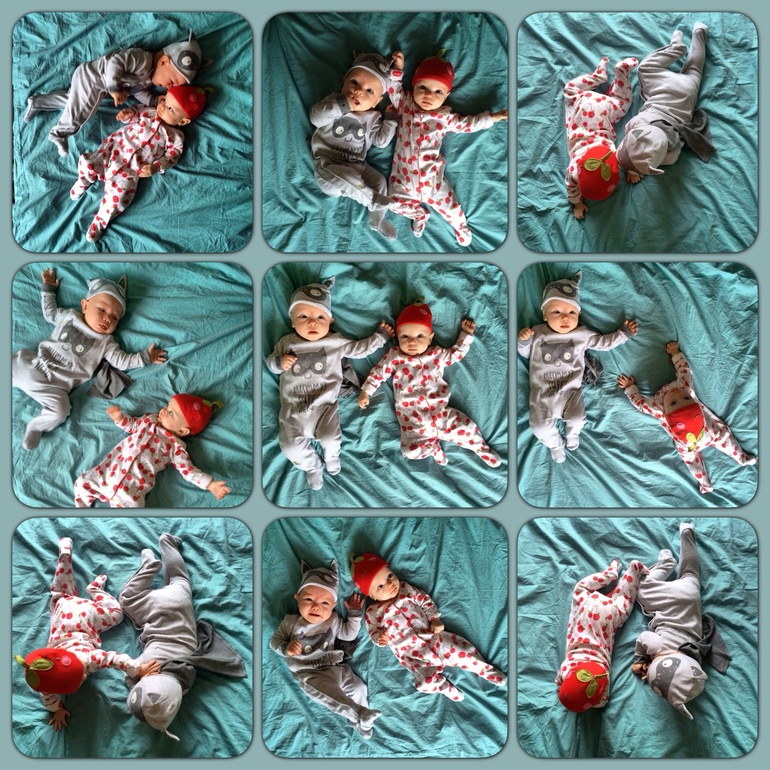 Двойняшки до 1 годаДаня: В - 7850, Р - 70 см, ОГл - 44,5, ОГр - 45