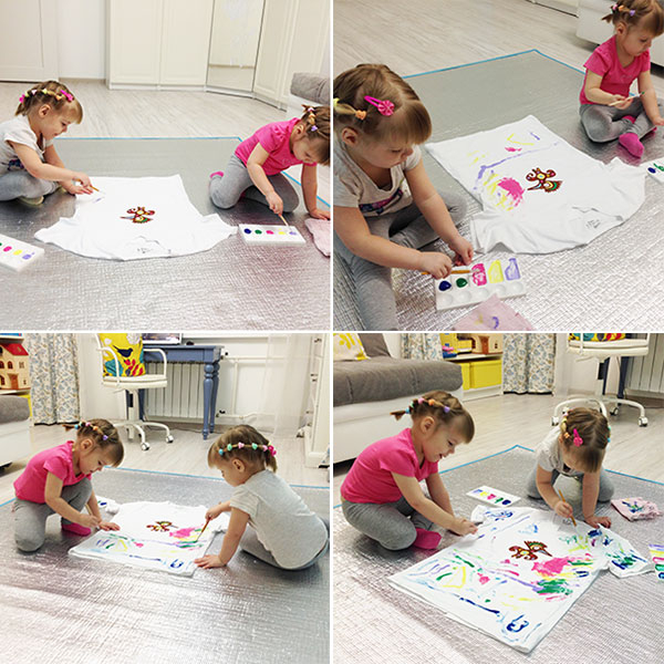 Процесс создания футболки им ну ооочень пришелся по вкусу, теперь просят разукрасить футболки себе. Видимо, придется в скором времени прикупить n-ое количество белых маек.