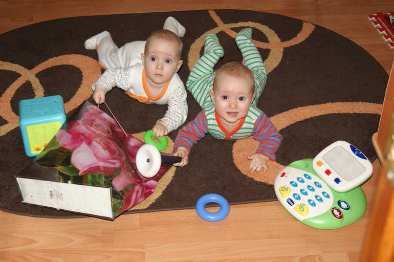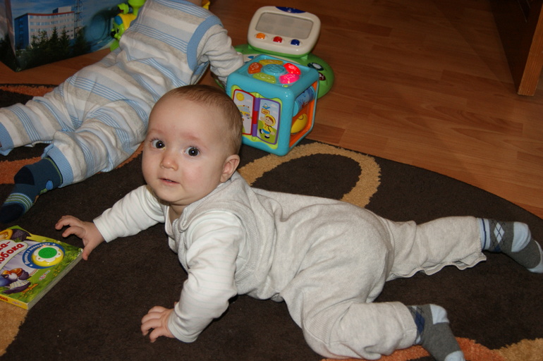 Да, сиденье только в самом широком месте ванны прилипает. Купаем их по очереди теперь вместе невозможно. Как вы? Что у вас новенького? Снег весь растаял? Коляску обновили? Мы послезавтра поедем на ярмарку коляску смотреть. Может и купим. Вы обувку не приобрели еще? Мальчишки активно встают. Тема на руки ходить хочет