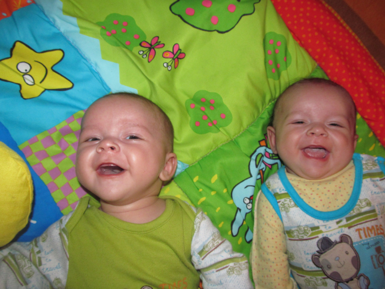 Двойняшки до 1 годаПривет, двойные(и тройные) мамки! Я совсем пропала, три месяца не появлялась тут. После родов было столько перемен, вкратце, мы хотели переезжать в подмосковье (там мы уже обманутые дольщики), а в итоге пришлось остаться в Москве, но удалось все же как я сейчас понимаю, сесть в последний вагон уходящего поезда (тк продажи в Москве просто встали). И мы поменяли однушку на 2-х комнатную 69м.кв. в нашем же доме. Итак, нам 4 месяца. Мальчики за 4 мес набрали по 16см роста, набирали по 4см в месяц, сейчас они по 65см и весом по 6500г. Родились 2780 и 3170. Различаются обхватом головы, у Ромы она больше на 1см. И лицо у него хитрее. Напишу как наверное любая мать, у меня самые лучшие мальчишки) Мне даже пожаловаться не на что. Они как две куклы, всегда улыбаются, уже узнают и радуются мне, отдача от них огромная, смотрят в глаза и разговаривают активно Агу, ага, гага,