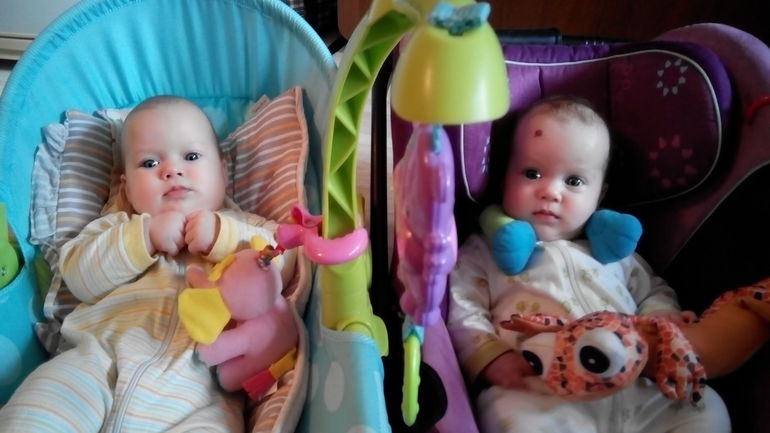 Да, все наладилось с ГВ))) у нас шезлонг-качалка (фишерпрайс). Друг на друга смотрят, улыбаются( особенно когда на животах напротив лежат)