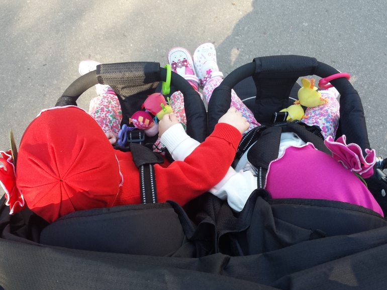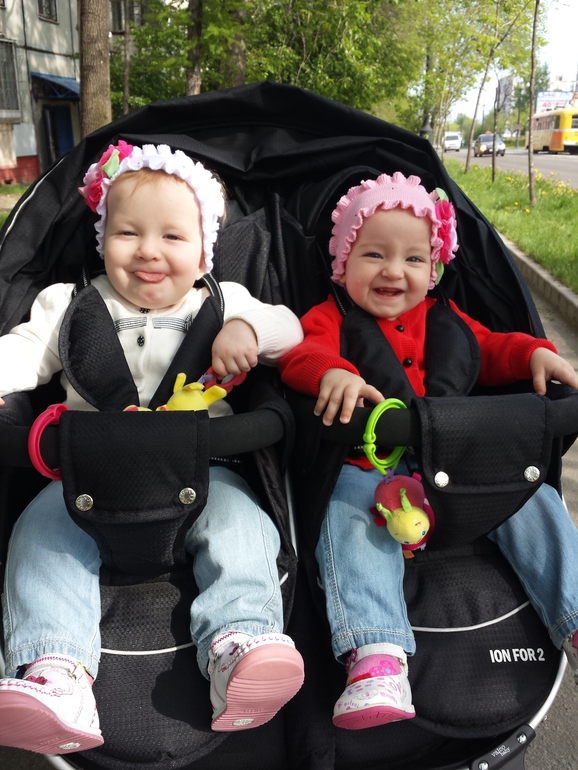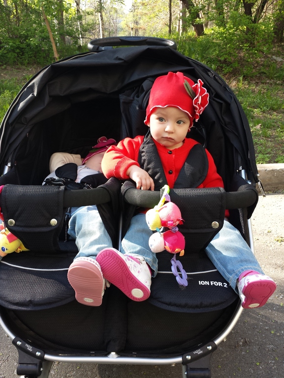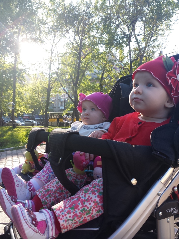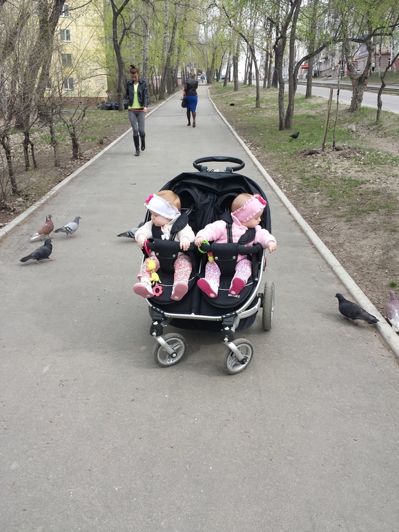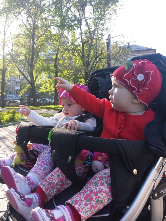 Гуляем очень весело, это уже не беспомощные комочки. Мы любим теперь смотреть на голубей, мелких собак, светофоры и прочее. Т.е. на все это идет реакция в виде оттопыренного пальчика и возгласа "о!" или "аха!" Естественно, мы являемся еще и объектом умелительных возгласов и улыбок прохожих, а в особенности детей, которые так и норовят залезть в колясон.