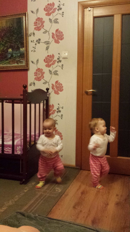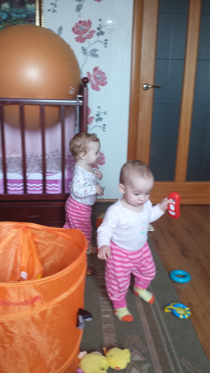 Девчонки теперь вместе дерутся, смеются, отбирают игрушки и пакостят. Теперь наше пространство в рамках одной комнаты и кухни расширяется и мой день начинается с помывкой полов (у нас пес) , а так же я строю баррикады, где опасные места. В общем весело))
