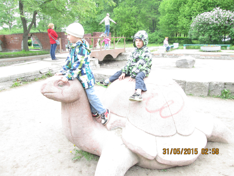 Когда-то моя тётка жила рядом с этим парком и там на черепахе, слоне и крокодиле сидела я 6-ти летняя))) А вчера на них посидели мальчишки, а у меня ностальгия))))
