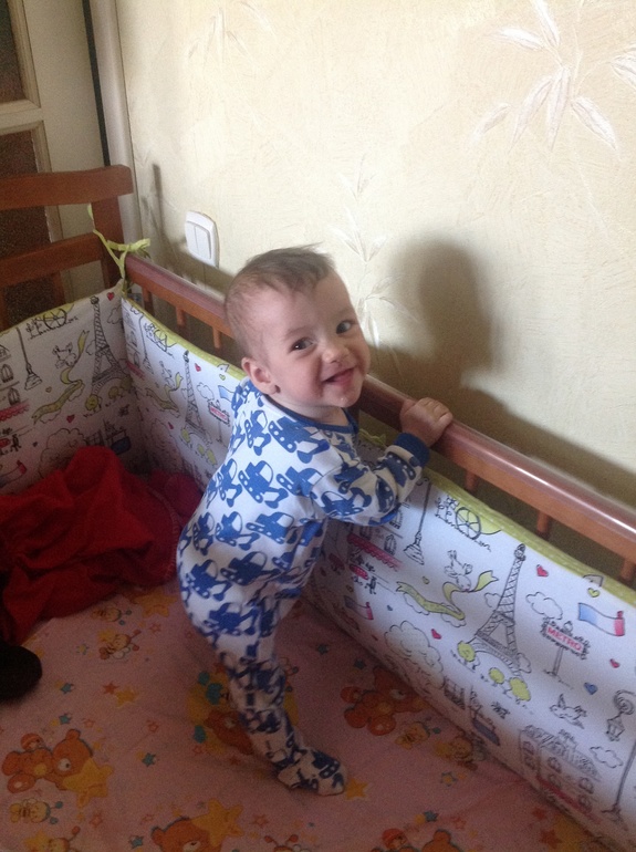 А второй малыш лишь иногда встает на четвереньки, и гоняет по пластунски! И нет попыток встать. Может потому что у него кроватка не закрыта бортиком, не было стимула встать и так все видно?