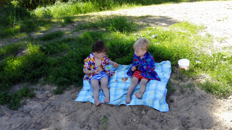 Мы попрежнему ходим в сад.Не стала выводить их на лето,хотя с работы меня сократили после окончания декретного отпуска.Через две недели едим в отпуск на месяц,там и оторвёмся.Пока забираю их после сна и идем гулять долго-долго,пока сами не запросятся домой.Перекусываем на улице сидя на лавочке:))