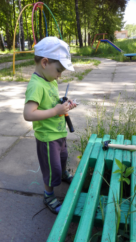 в руках у Серафима..не удивляйтесь..то самое,что Вы подумали.Он любит не стандартные игрушки.С этой целый день не расставался.На улице прочистил всё что попадалось под руку.И не оставил равнодушным никого из прохожих;))
