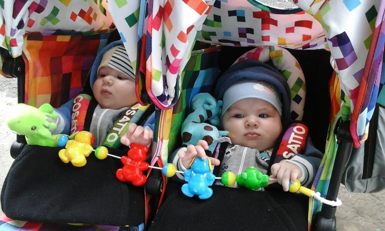 Спасибо)))Папа говорит,что нужно биту в магазине покупать...женихов гонять))Нам пока 13 лет стукнуло...Касатто...Нравится.После кози ход вообще не чувствуется,едет легко..на бордюры заскакивает довольно легко,ну конечно нужно помочь ногой..также как и у кози..ребята с удовольствием в ней катаются-яркая..Мы довольно крупные,но как видите умещаемся и ещё местечко есть.Скажем так, в прогулке кози нам не так комфортно(ноги не умещаются на предложенной площадочке))Шатаются ручки и кажутся не крепкими-фигня...привыкаешь..ещё нужно приспособиться к шагу коляски,в середине появляется колесо,тоже привыкаешь-не замечаешь.По-моему ,это у всех тростей такая проблема.минус..тяжеловато затаскивать на 5 этаж!возможно,если вынуть из неё все вставки..капюшон,чехлы и т.д...но мне лень таскать всё отдельно,поэтому когда нет папы я пыхчу,но таки пру всю эту систему домой.И ещё,когда собираешь..то страшновато ,что сломаешь.Пока не приспособились. А так,то я влюбилась в эту колясочку,лёгкая при прогулке ,маневренная,ребятам нравится.Вроде не продувается.Ребятам можно планшетики вставить,в капюшоне есть такая возможность-вставка.