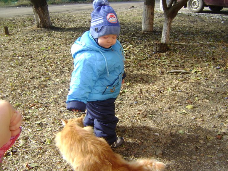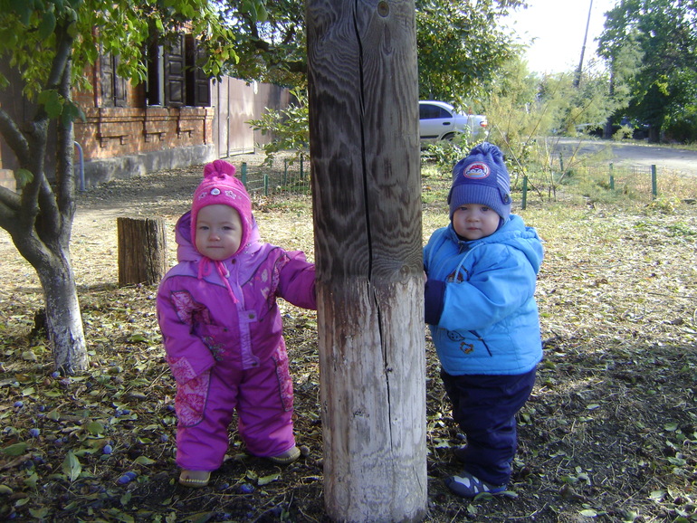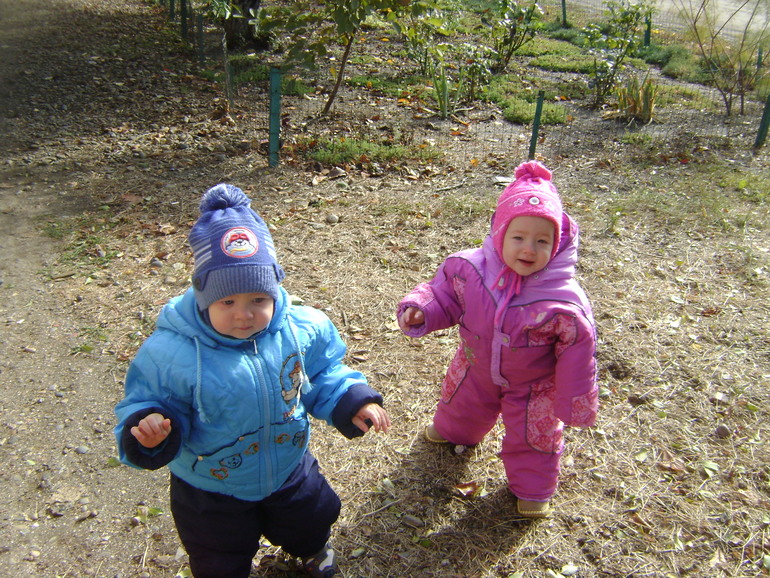 Так необычно видеть своих детей на ногах на улице, Егор еще и без моей помощи ходил. Пройдет немного, бухнется, а встать не может, одежда мешает, объемная очень