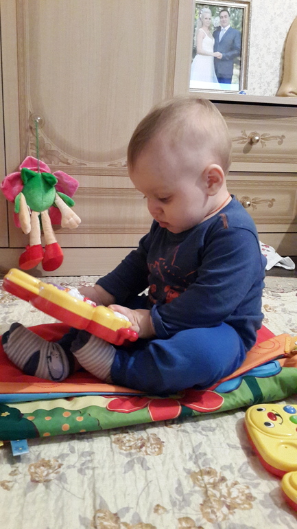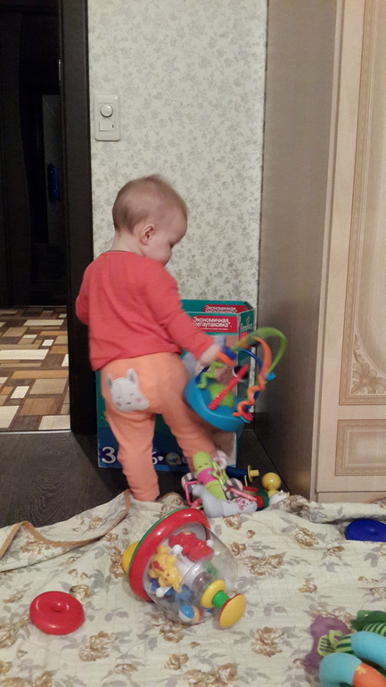 а я всё жду когда мои пойдут, у опоры уже скачут так бодренько, а без поддержки пока никак (( и вроде держатся только одной рукой, но потом если отпустить - равновесие теряют или просто боятся ..