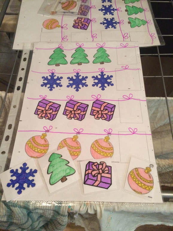 Пытались укладывать выпавшие предметы сверху на нарисованные. Потом через раз начали ложить на квадратики пустые. Но все разложили правильно без ошибок, что радует очень. Буду предлагать ещё такие игры. Да и эти фигурки заламинировала чтоб на дольше хватило. Потом Мемори ещё попробуем, не успели сегодня. А какие гирлянды у вас?