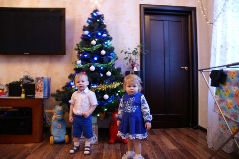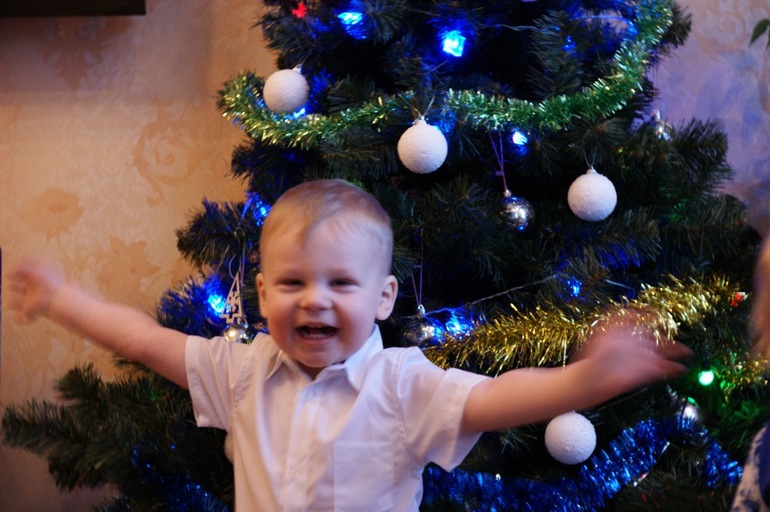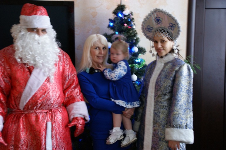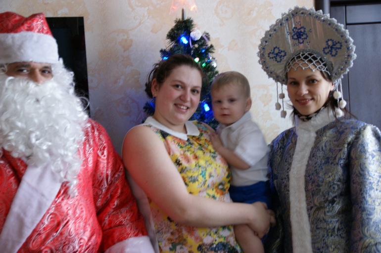 Илья с мамой, елкой, дедом морозом и Снегурочкой :)