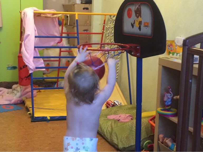 А вот подарок от бабушки: баскетбольное кольцо и мяч. Визгу и писку с играми было уххх как много. Очень детям понравилось.