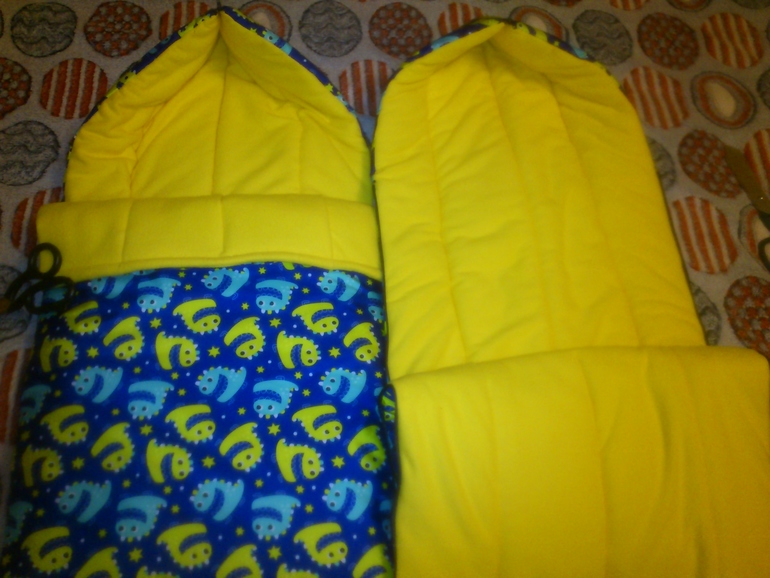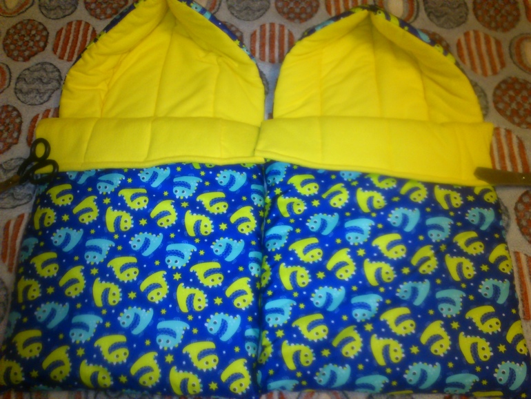 Покупки для наших малышей - хвастаемсяСшила я своим внучатам тёплые конверты в коляску. Строго не судите, я не профессионал, и поэтому кое где не очень ровненько. Ещё не пришила липучки или кнопки под низ отворота. Материал сверху дьюспо, синтепон 200 гр. на кв.м. и мягонькая флиска. По бокам замки и сверху на капюшоне тоже. 10 часов работы и вот что получилось)