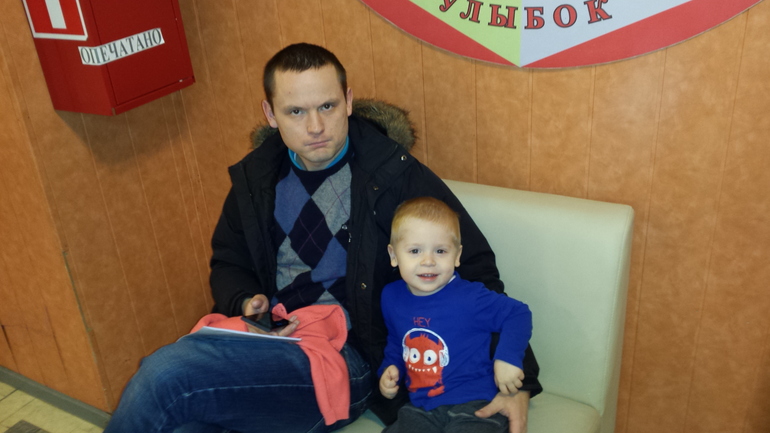 Ярик очень любит папу, а папа не любит фотографироваться)))))