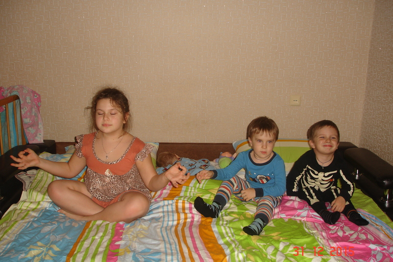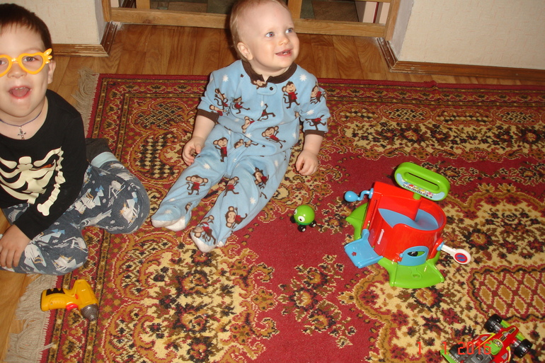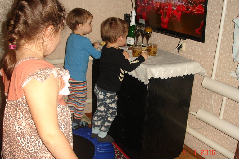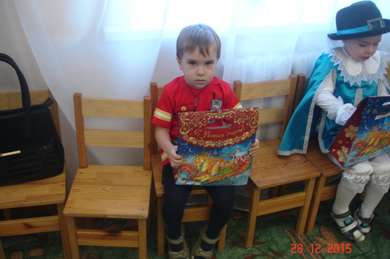 это наш первый НГ в саду(прошлый мы проболели),Ванюшка(слева) молодец от начала до конца принимал во всём участие,а Мишка сначала за мои штаны держался,потом отвлекли его танцем с фонариками)),после которого он сел на стульчик и смотрел в окно((... на деда Мороза и Снегурку не отреагировали вообще(не только мои,все дети как-то ровно их восприняли)),может,потому что Снегуркой была их воспиталка,а дед Мороз с женским голосом))...стихов моим не давали,наверное ,я виновата,не занимаюсь с ними,и они ничего наизусть не знают,хотя Ванюшка активно буквами и знает весь практически алфавит и цифры до десяти,любит на компе их печатать)),Мишка в этом плане противоположность((