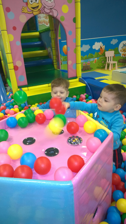 . На горшок из под палки, сами есть не очень то хотим, на улице разбегаемся, засыпать стали плохо, не дети а солнышко)))) Справлять решили не справлять, кризис (как меня достало это слово), но мальчишкам небольшой праздник всё-таки утроили. С утра после завтрака поехали в "Муравейник", в день рождения там бесплатно, вот там мы оторвались, и напрыгались и набегались, и мама еле унесла оттуда ноги, бабушка до сих пор отойти не может)))