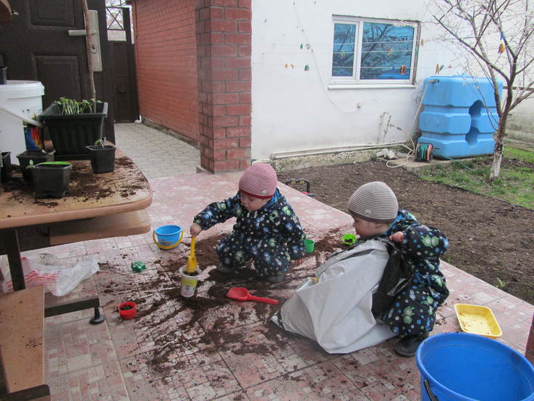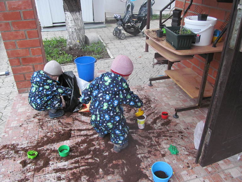 Я мама добрая))) Ну и что, что это не песочек...всего лишь земля...Главное деткам весело