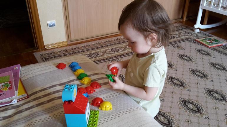Недавно купила пупсикам лего дупло и мозаику стеллар. Сначала они просто раскидывали детали, а потом начали их соединять. Особенно меня удивило, что они сами поняли, как мозаику собирать, там очень маленькие выступы и дырочки. И книги по-прежнему главные фавориты, так что иногда минут 10 спокойно играют самостоятельно. Ну и носятся по квартире, карабкаются по внешней стороне кроваток, качаются на лошадке и возят ее по комнатам.