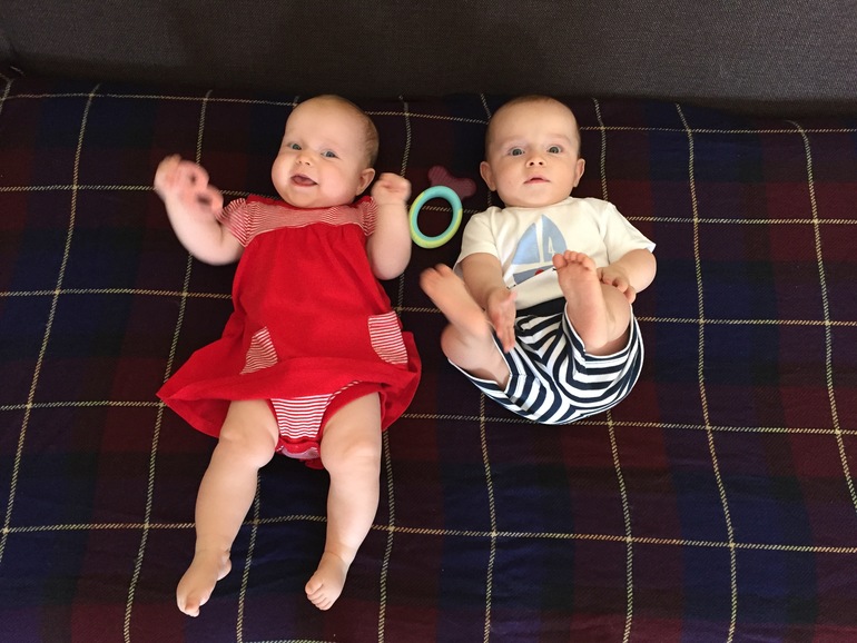 Всем привет!) вчера нашим малышастикам исполнилось 6 месяцев!) Полгода! Даже не верится 🙆🏻 казалось, что это прям очень далеко 🙈 Девочки, которые читают нас в инстаграме, пост я дублирую с небольшими изменениями) подробности под кат Что мы имеем/умеем: вес-рост я не знаю, на приём идём 8-го августа 😊 У каждого по 2 зуба 🐰🐰 (что для меня крайне удивительно, т.к. у Вероники зубов не было до 8 месяцев) дети полностью на гв (чем очень горжусь 💪) Из прикорма у Платона кабачок и цветная капуста, у Агаты только кабачок, кормления не заменяю. Воду пару раз предлагала - не пьют. Платон пытается вставать на четвереньки и неплохо передвигается на пузе и задом 😅 очень всем интересуется и все хватает двумя руками и тащит в рот. Когда ревет произносит "ма-ма-ма" и "ба-ба-ба" 😅 любит держать себя за ножки) очень любознательный парень. Агаточка никуда не торопится и пока так и не переворачивается 🙈 Вот буквально вчера начала делать первые попытки!) того и гляди через пару недель осилит!)) лёжа на спине может крутиться вокруг себя, отталкиваясь ногами. Вообще ноги у неё заметно сильнее, чем верхняя часть туловища. Плечи, шея, руки заметно слабоваты. И нам, наконец-то, соизволили выдать направление на массаж в поликлинике (на сентябрь), до этого два курса делали платно. Ещё мы прошли с ней электрофорез, лампу Биоптрон и СМТ. Все по 10 раз. К неврологу после этого ещё не ходили, все жду от неё улучшений, а то залечат её 🙈Девочка она очень разговорчивая)) любит поболтать ) к чужим относится с опаской. Игрушки хватает, если дать ей прямо в руку или повесить перед ней, из рук пока не берет. Но я думаю, что догонит она брата, просто надо чуть больше времени ей. Такие дела у нас)