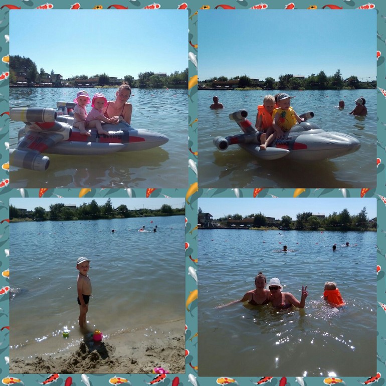 Лето выдается теплым и даже жарким, поэтому много гуляем и купаемся, пока папа на ремонте. И сын и девчонки от воды в полном восторге, купаются, плещутся, а мама чуть-чуть загорает)) Я практически всегда одна с детьми, радует то, что скоро девчонки пойдут в сад, а именно в сентябре после моря. В саду нас уже ждут, но я решила до моря не вести, дабы заразу не поймать перед поездкой. На поездку возлагаю большие надежды, что хоть немного отдохну и развеюсь, побудем вместе всей семьей( что бывает так редко, так как папа на работе и на ремонте), сменим обстановку и покупаемся в море.