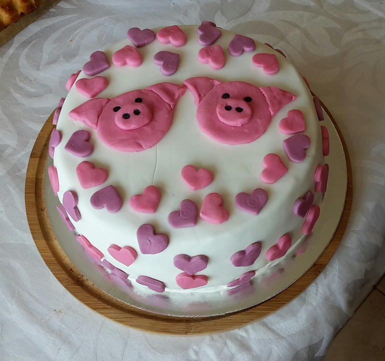 Не могу не показать торт, в этот раз делала сама. Хрюшки - потому что мне нравятся мини-пиги и я так иногда зову девчонок, потому что у меня была розовая мастика и потому что в час ночи слепить поросячий пятачок проще, чем принцессу, например :) А внутри шоколадные коржи, крем из сливочного сыра и взбитых сливок, голубика и банан. Отбросив ложную скромность, скажу: было очень вкусно! Только именинницы этот шедевр не пробовали :)