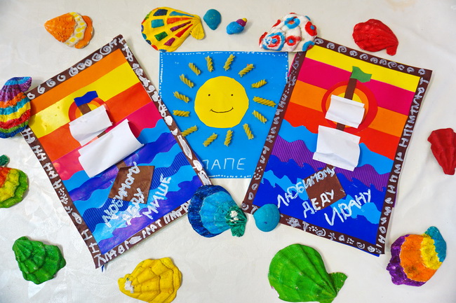 Если в 2 года они робко делали первые шаги в творчестве (черкали на ракушках и камнях мелками, ставили кляксы и штрихи кисточкой), в 3 достаточно уверено орудовали кистью под моим руководством, то в 4 уже сами решали, что им делать и как.