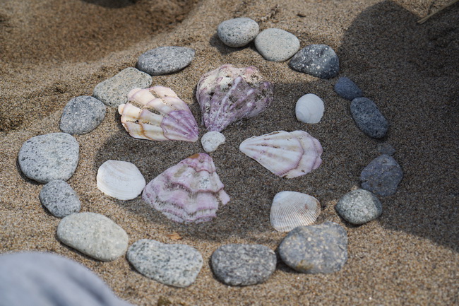 причем это занятие их так увлекло, что когда мы приехали домой, они вывалили все раковины гребешков и мидий прямо на пол возле холодильника и продолжали собирать, споря, куда какую ракушку вставить, чтобы было красивее).