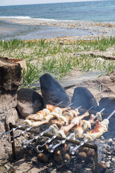 А наш дорогой и любимый папа тем временем пожарил шашлыки.