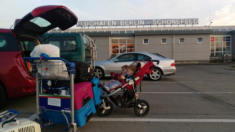 ПутешествияСама я всегда с жадностью читала подобные посты, пытаясь усвоить побольше тонкостей на будущее. Не знаю пригодится ли кому моя писанина, просто захотелось поделиться. Начну с поездки до аэропорта. Лететь собирались мы вчетвером: я, муж и двойняшки полутора лет. Из вещей унас было 6 больших чемоданов, 2 маленьких, коляска bumble ride и кот в клетке. Чтобы всё это доставить в аэропорт мы решили воспользоваться детским такси, заказывали микроавтобус. Вышло дорого! С задачей справились, но поездка не доставила удовольствия. Машина видавшая виды, детские кресла старые, прикреплены очень шатко, но всё работало (я удивилась, думала не смогу перевести в лежачее положение). И да, одно кресло заметно пахло рвотой. Сумму озвучили при заказе и подтвердили в смс, но в конце поездки водитель взял ещё денег за то, что ждал пока муж все вещи погрузит. Около аэропорта все вещи погрузился на 2 тележки, прошли досмотр, сдали багаж, оплатили перевес. Потом прошли таможенный контроль и началась посадка. Мы остались последние и не влезли в общий автобус-поэтому нам подали отдельный😊Ехали как випы 😂 Коляску сдали у трапа. Им важно было, что она состоит из одной части и весит менее 20кг. А вот получение коляски в Берлине было на ленте багажа. Пока мы до неё добрались-прокляли всё😖 Детей пришлось тащить на себе, (они орали и идти сами отказались) плюс ручная кладь и клетка с котом.😵 И сзади подгоняли работники аэропорта, говоря что это наши проблемы, а не их, когда мы останавливались передохнуть.