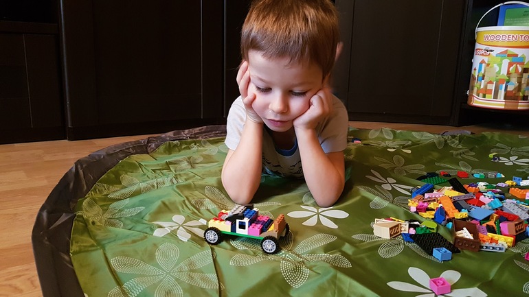 Покупки для наших малышей - хвастаемсяНадоело собирать кубики лего и прочие мелкие детали разных конструкторов? устали испытывать боль от того, что случайно наступили на кубик? (это я так... сама ни разу не наступала, но наслышана о том, как это больно) тогда вам в помощь, так называемый, лего-коврик, на нем можно и играть, и потом легким движением руки все в него собрать как в мешок, а из мешка (по желанию) можно уже и в коробку сложить.