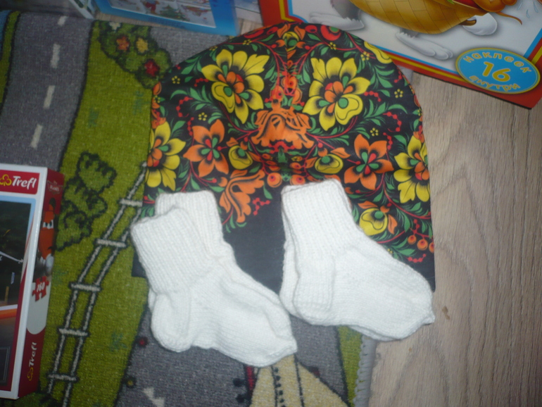 Настя, я шерстила сайты в поисках двух комбезов для мелких тк они как-то подвыросли из всего! Как Вы так угадали? Ладно комбезы, носкииии, друзья мои, носки - самовязанные (как я поняла) прелестные беленькие теплые носочки. Ведь только на днях я думала, что нужно своим связать, только вот руки не доходили. Настя, Вы и правда Снегурочка! А моя шапочка! Я так люблю этот принт!