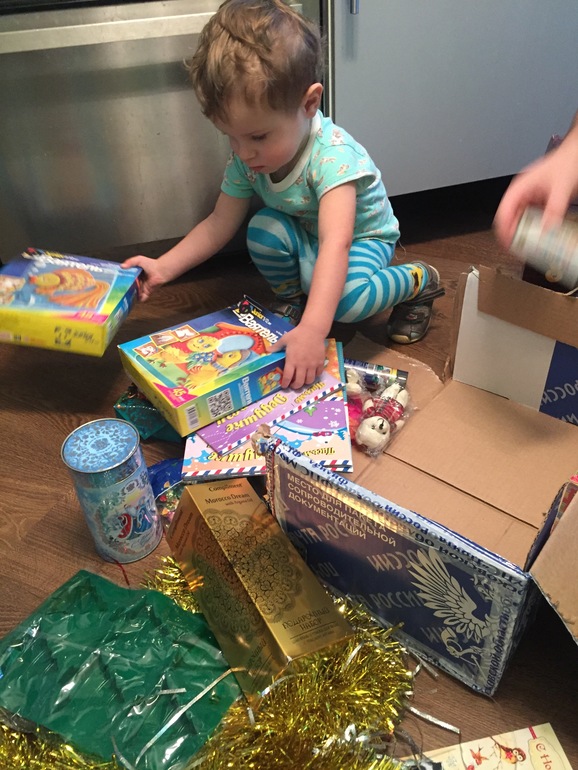 ПраздникиБумажки с почты я так и не дождалась...вот так "хорошо"работает почта России. Хорошо Лиза меня отправила на почту, сказав что посылка давным давно там лежит. Вынесли огромную коробищу)))) Спасибо Снегурочке! Подарочки для меня и мужа. Детям сладости и разные развивашки, книжки. Куча всего! Спасибо