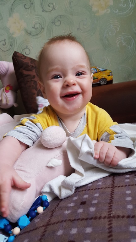 Вернее у Александра)) вот он и догнал сестричку) сегодня в 6мес и 16 дней у Саши вылез первый зубик!