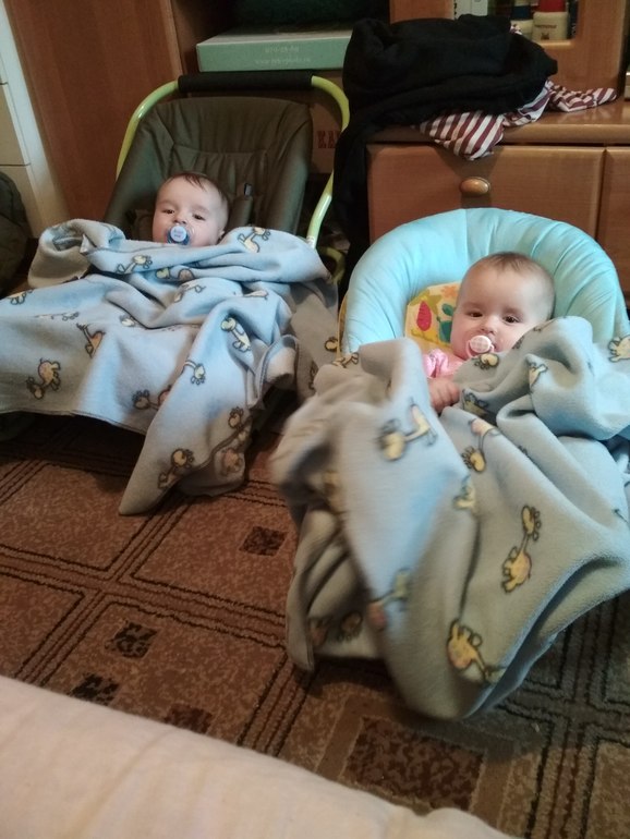 В целом был очень тяжёлый месяц. Прошли 6 сеансов массажа (тут больше не делают). Из-за сбитого режима ежедневно были крики. Во время массажа подхватили вирусное, болели всей квартирой, все сопливые были. Массаж сказали не отменять. Нечем дышать из-за соплей - крики. Назначили Мирамистин от горла, от него начался понос. Болели животы из-за поноса - крики. Потом вводили цветную капусту. У сына болел живот, дочку настигли конкретные колики, 4 дня я думала, как бы не выйти в окно, потому что нервы не выдерживали. Сейчас тоже много криков, и я уже думаю, что это возрастное, так как они от капризов... Типа того, что перевернула, когда не надо, положила куда не надо, поесть дала не той температуры, и не там, где надо 😣 И относится это в основном к дочке. Валера поспокойнее. Но я ещё с роддома знала, что она.. Да... Она такая 😂