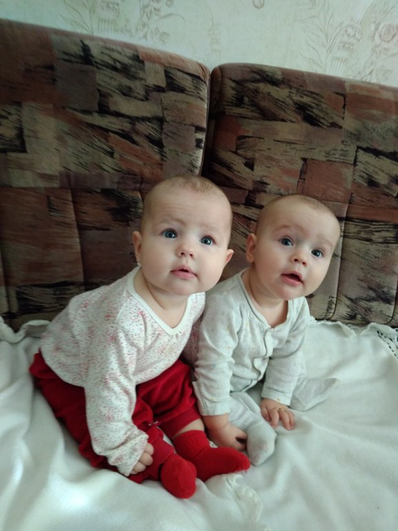 Двойняшки до 1 годаСегодня ровно 7месяцев нашим деткам. На прием к врачу мы ещё не ходили, поэтому вес и рост не знаю, но Данил ощутимо тяжелее Даши. В прошлом месяце разница была почти килограмм (7,200 и 6,500). Дашенька у нас миниатюрная девочка.