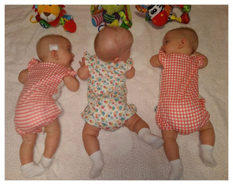 Потихоньку восстанавливаемся после операции, девочки уже вернули свою умелку переворачиваться на живот), делают это вообще не напрягаясь. Кариночка уже хорошо держит голову, а то я стала уже переживать ( голова висела при подтягивании за руки) сейчас держит голову, сама подтягивается руками, может сесть))) УРА!