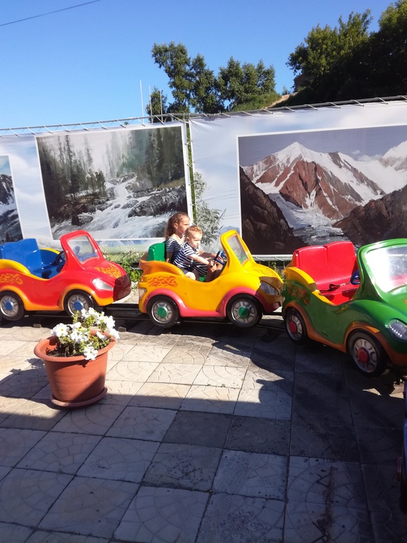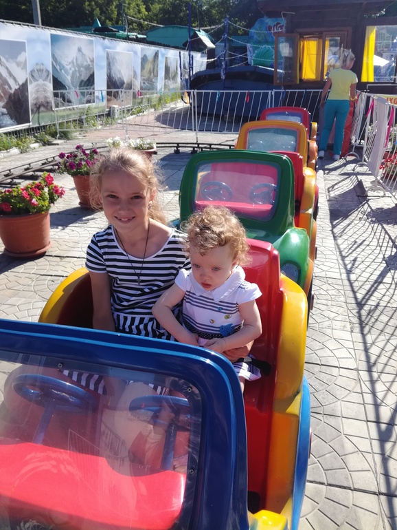 Вчера ходили в парк покатались на карусели были довольны,немного фото