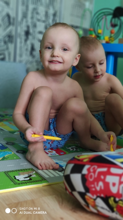Старший шкодрила , мы его дома зовём Данюха-разгромуха) Перемещается исключительно бегом громя все на своем пути 🙈 По спортивному комплексу лазает со скоростью звука. На кроватях скачет как на батуте крутя сальтишки 🙃 Средняя дочь занимается народными танцами , сейчас уроки через зум. Как только из ее комнаты звучит музыка он тут как тут, танцует и ноги задирает вместе с ней) Педагоги относятся с пониманием и уже ждут его в коллектив как подрастет 🕺