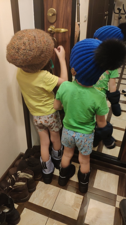 Затем они вместе решили что одной прогулки им было маловато, утеплились (зима же всё-таки), взяли ключи и пошли отпирать входную дверь