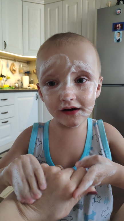 Вот таким я его увидела когда вернулась 😆 Прям домовёнок Кузя :" И сам отмоюсь и одёжа отстирается")))